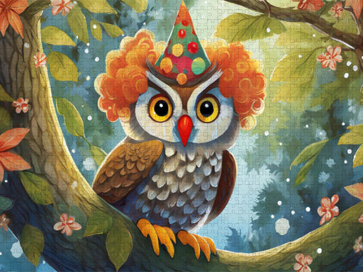 Tierische Metaphern in Bildern Die humorvolle Szene zeigt einen Kauz der sich als Clown verkleidet hat. Das Bild vermittelt die sprichwörtliche Re...