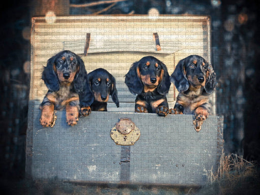 Afficher tous les détailsWelpen von der Laaberbergmeute, Langhaar, Standard, schwarz-rot/-tiger - CALVENDO Foto-Puzzle'