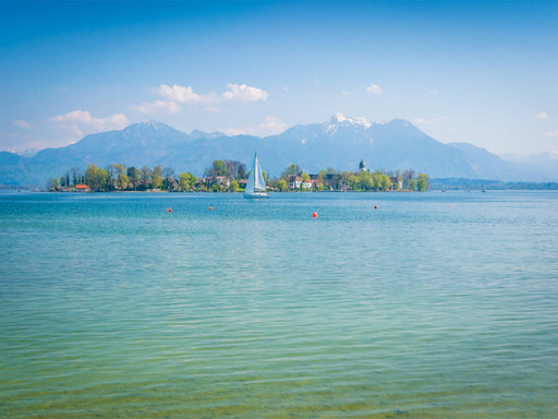 Die Fraueninsel im Chiemsee an einem Tag im Frühling Dieses Motiv holt die malerische Kulisse der Voralpen nach Hause. Träumen Sie sich an den See...