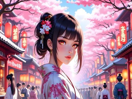 Anime Mädchen aus der Edo Zeit Tauchen Sie ein in die zauberhafte Welt des Edo-Japans! Dieses kunstvoll durch KI-generierte Bild zeigt ein Anime-M...