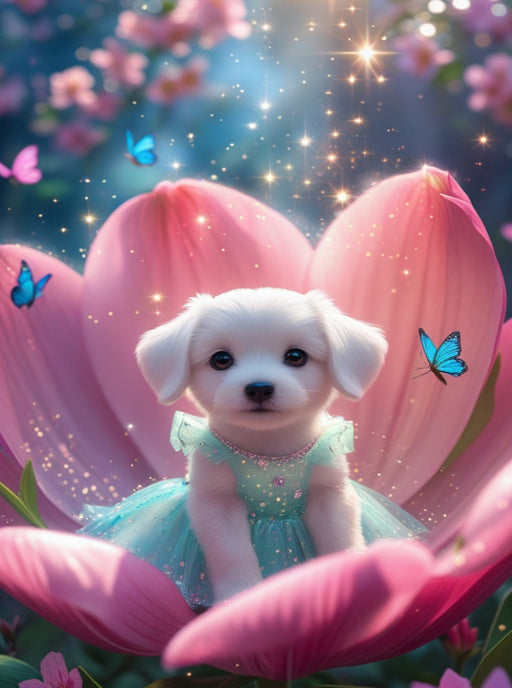 Märchenhafte Eleganz und ein Hauch Magie Der süße Hundewelpe erstrahlt als Aschenputtel, festlich und voller Anmut. Klassische Märchenstimmung ver...