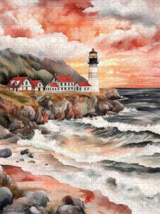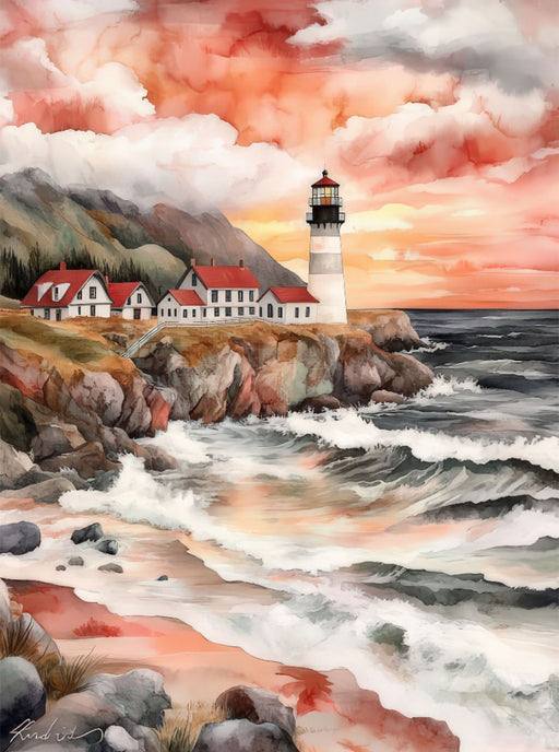 Entdecke die zauberhafte Welt der Aquarell-Leuchttürme mit unserem atemberaubenden Bild, das sowohl als Puzzle als auch als Leinwand erhältlich i...