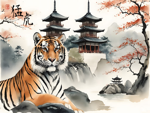 Japanische Aquarellmalerei Das unterhaltsame Puzzle eines Tigers aus einem Motiv des Kalenders „Tierische Anmut - japanische Aquarellkunst von der...