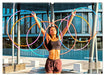 Februar: Junge Artistin probt mit mehreren Hula Hoop Reifen eine akrobatische Performance