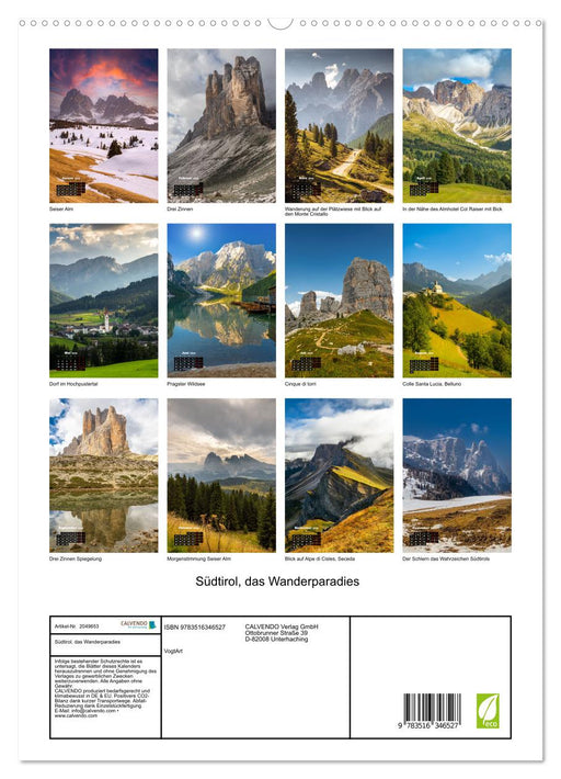 Afficher tous les détailsSüdtirol, das Wanderparadies (CALVENDO Wandkalender 2026)
