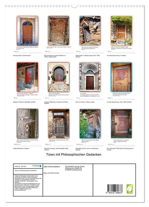 Afficher tous les détailsTüren mit Philosophischen Gedanken (CALVENDO Premium Wandkalender 2026)