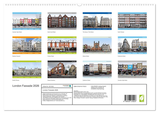 Afficher tous les détailsLondon Street Fronts 2026 / UK-Version (CALVENDO Premium-Calendar 2026)
