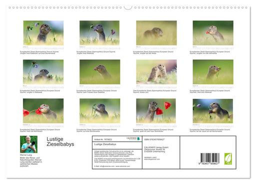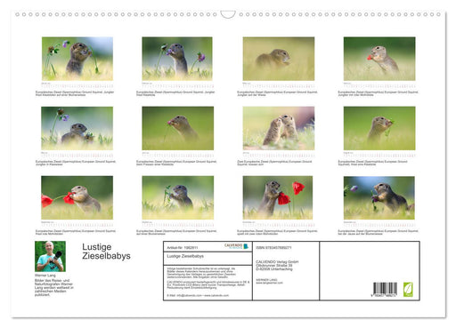 Jungtiere der gefährdeten Ziesel bei der Futtersuche auf der Blumenwiese (Monatskalender, 14 Seiten) Der Reise- und Naturfotograf Werner Lang präs...