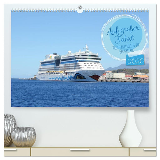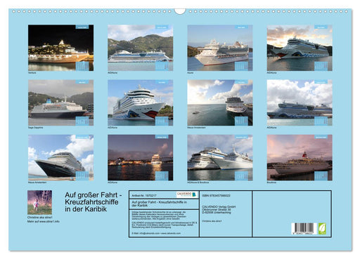 Afficher tous les détailsAuf großer Fahrt - Kreuzfahrtschiffe in der Karibik (CALVENDO Premium Wandkalender 2026)