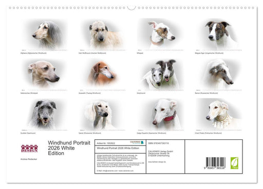 Afficher tous les détailsWindhund Portrait 2026 White Edition (CALVENDO Wandkalender 2026)