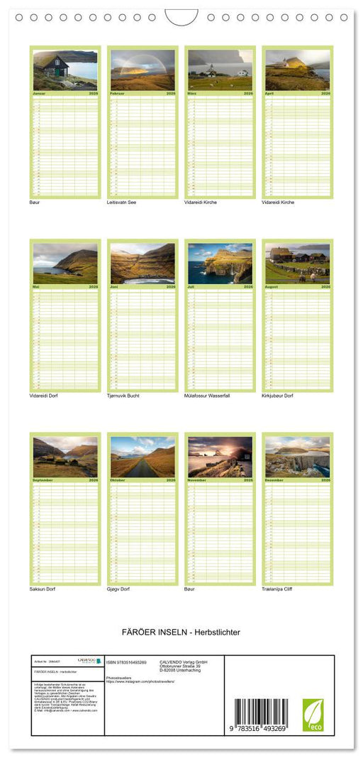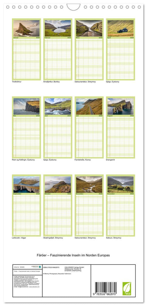 Afficher tous les détailsFäröer – Faszinierende Inseln im Norden Europas (CALVENDO Familienplaner 2026)