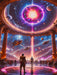 Ein gigantisches orbitales Kolosseum schwebt majestätisch über einem Gasriesen, in dessen flammender Atmosphäre sich das Licht spiegelt. In der futuristischen Arena liefern sich menschliche Gladiatoren, kybernetische Androiden und außerirdische Bestien erbarmungslose Kämpfe, während purpurne und goldene Banner mit imperialen Symbolen über der Arena wehen. Eine holografische Projektion des Imperators beobachtet die Schlacht, umgeben von einem tosenden digitalen Publikum – die Ludi Caelestis, die himmlischen Spiele, feiern Ruhm, Blut und Unterhaltung im Stil des antiken Roms.