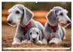 Der Bedlington Terrier ist eine mittelgroße Hunderasse, die für ihr einzigartiges Aussehen und ihre sanfte Persönlichkeit bekannt ist. Sie haben eine charakteristische lockige Fellstruktur, die an ein Schaf erinnert, es gibt sie in den Farben Blauweiß, Leber und Sand. Diese Rasse hat einen schlanken Körperbau mit muskulösen Beinen und einen schmalen Kopf mit kleinen, dreieckigen Ohren, die nach vorne geklappt sind. Die braunen mandelförmigen Augen verleihen ihnen einen sanften Ausdruck. Bedlington Terrier sind intelligent, verspielt und liebevoll und eignen sich, wenn sie gut ausgelastet sind, als Familienhunde. Die ausdrucksstarken Fotos sind mithilfe der KI entstanden.