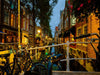 Die Voldersgracht in Delft zur Blauen Stunde: Historische Häuser spiegeln sich im ruhigen Wasser, während das sanfte Licht den Kanal in eine märchenhafte Szenerie taucht – ein Moment voller stiller Eleganz. Ein Motiv aus dem Kalender Feeling Holland