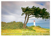 März: Windgeschorene Kiefer vor dem Leuchtturm von Hiddensee, Ostseekueste, Deutschland