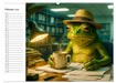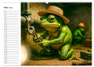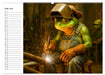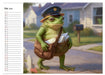 Der „Arbeitsfrosch“ nimmt den Alltag im Job mit stoischer Gelassenheit. Ob hinter der Supermarktkasse, im Bauarbeiter-Outfit oder als Taxifahrer in der Nacht – dieser grüne Frosch mit Strohhut erledigt seine Aufgaben auf seine ganz eigene Art: ruhig, humorvoll und immer mit einem Augenzwinkern. Die detailreichen, AI KI generierten, fotorealistischen Frosch Motive zeigen den tierischen Helden in abwechslungsreichen Berufen, mit vielen liebevollen Details im Vorder- und Hintergrund. Ein origineller Jahresbegleiter für alle, die Büro- und Arbeitsalltag mit Humor nehmen – oder schon längst auf „Dienst nach Vorschrift“ umgeschaltet haben.