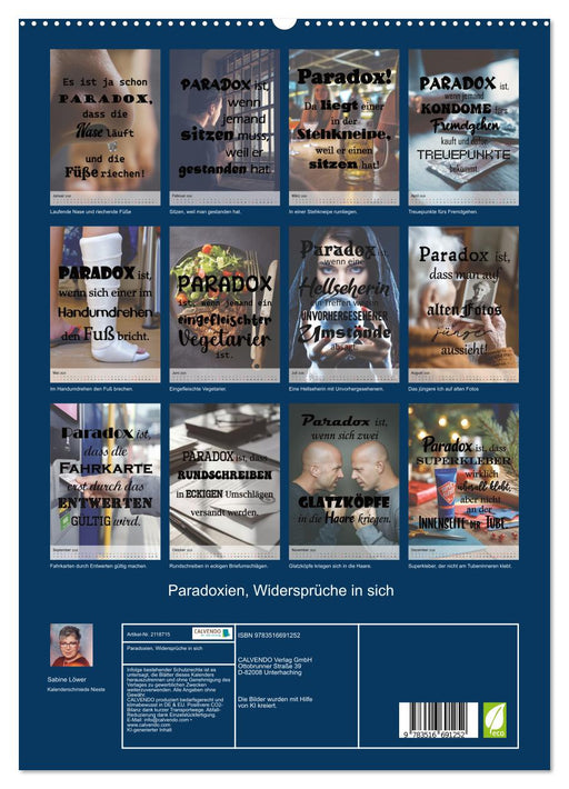 Paradoxe Aussagen mit passenden KI-Bildern (Monatskalender, 14 Seiten) Unsere Welt ist voller Widersprüche, von denen einige sogar unauflösbar sin...