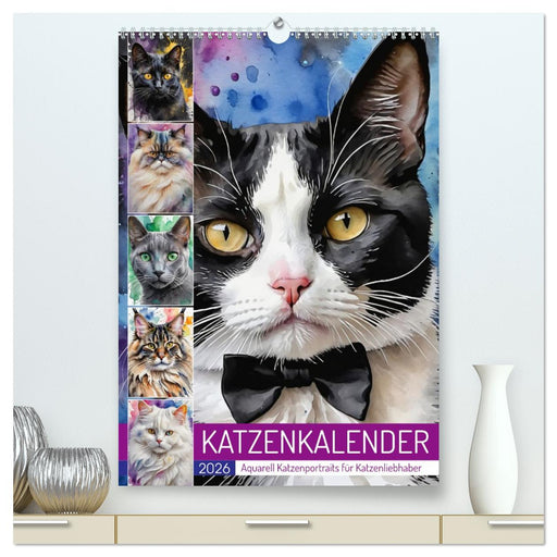 Afficher tous les détailsKATZENKALENDER - Aquarell Katzenportraits für Katzenliebhaber (CALVENDO Premium Wandkalender 2026)