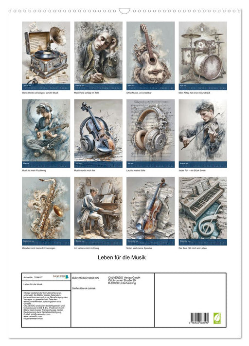 Afficher tous les détailsLeben für die Musik (CALVENDO Wandkalender 2026)