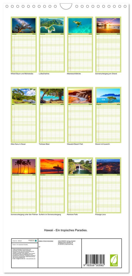 Afficher tous les détailsHawaii - Ein tropisches Paradies. (CALVENDO Familienplaner 2026)
