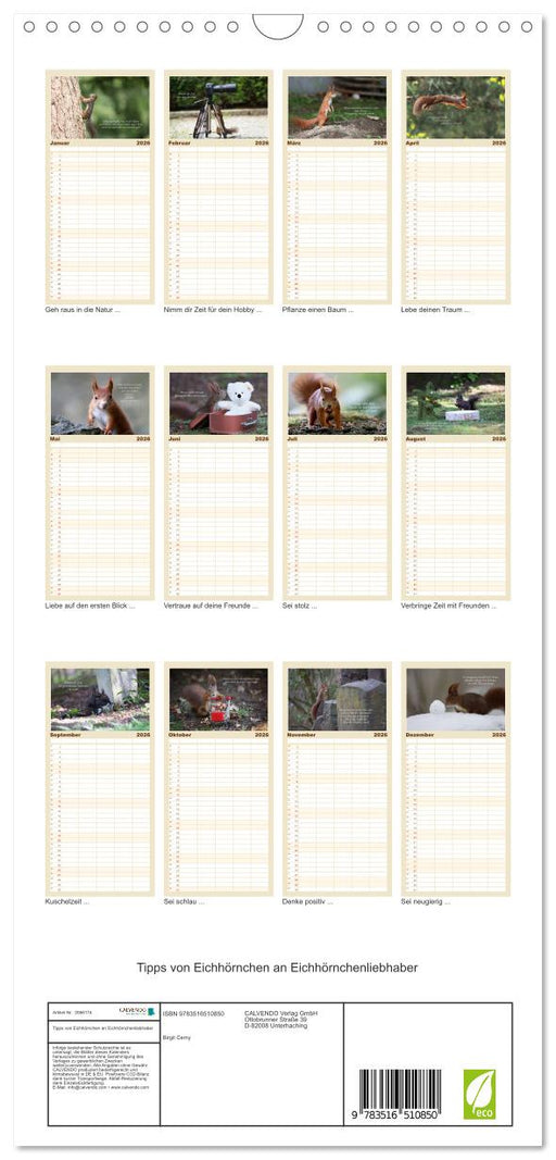 Afficher tous les détailsTipps von Eichhörnchen an Eichhörnchenliebhaber (CALVENDO Familienplaner 2026)