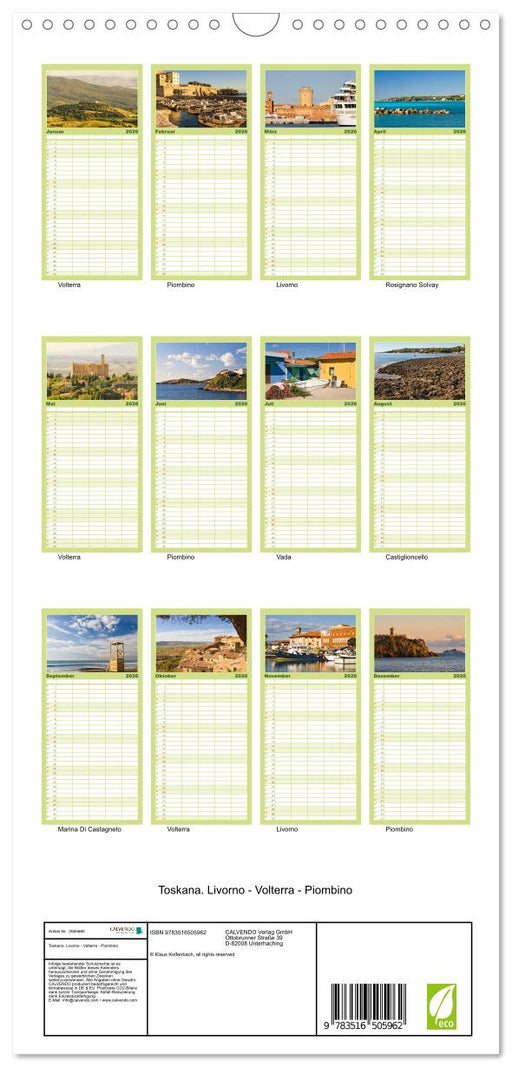 Afficher tous les détailsToskana. Livorno - Volterra - Piombino (CALVENDO Familienplaner 2026)