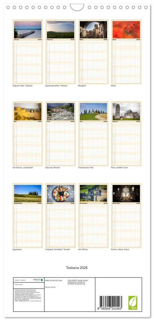 Afficher tous les détailsToskana - Emotionen aus dem Bel Paese (CALVENDO Familienplaner 2026)