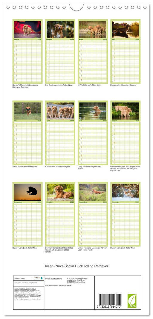 Afficher tous les détailsToller - Nova Scotia Duck Tolling Retriever (CALVENDO Familienplaner 2026)