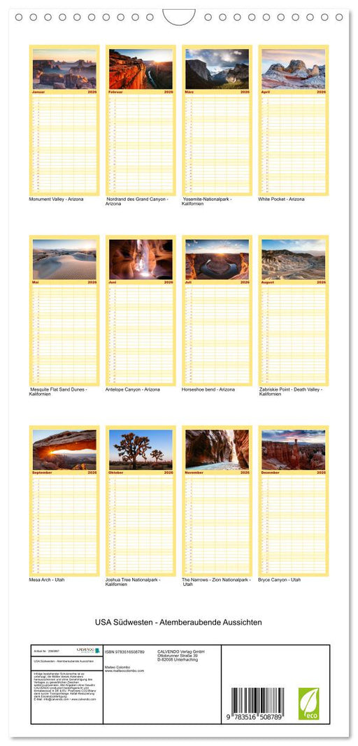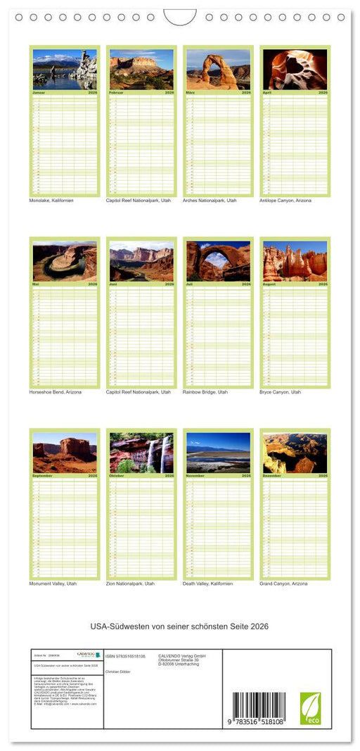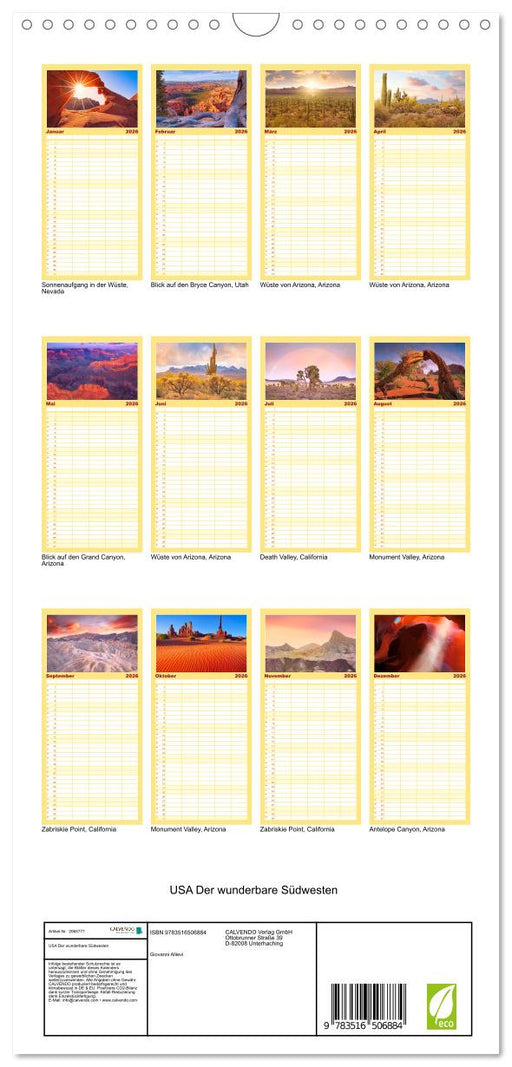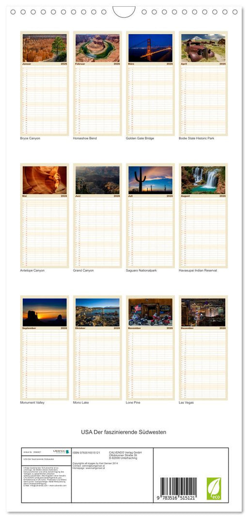 Afficher tous les détailsUSA-Südwesten von seiner schönsten Seite 2026 (CALVENDO Familienplaner 2026)