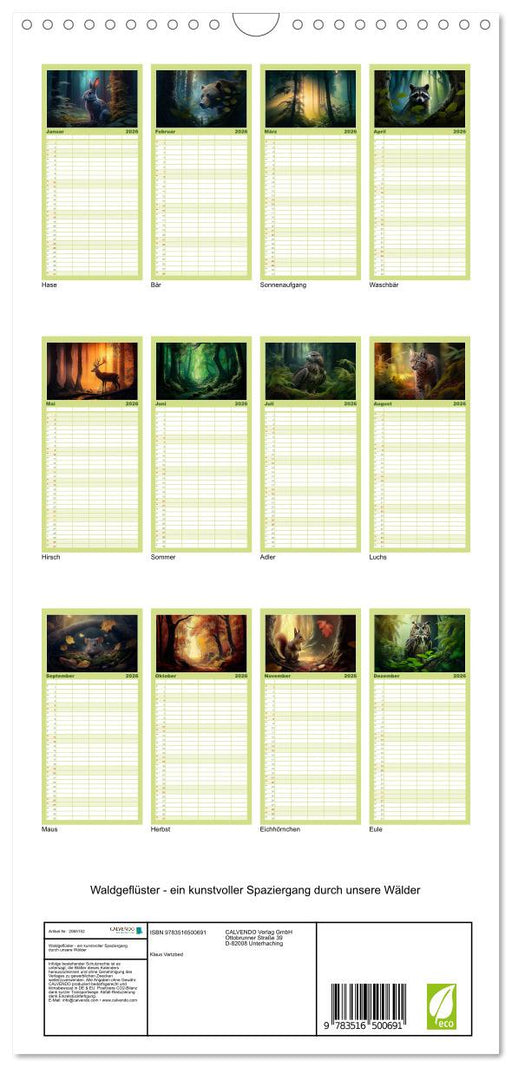 Afficher tous les détailsWaldgeflüster - ein kunstvoller Spaziergang durch unsere Wälder (CALVENDO Familienplaner 2026)