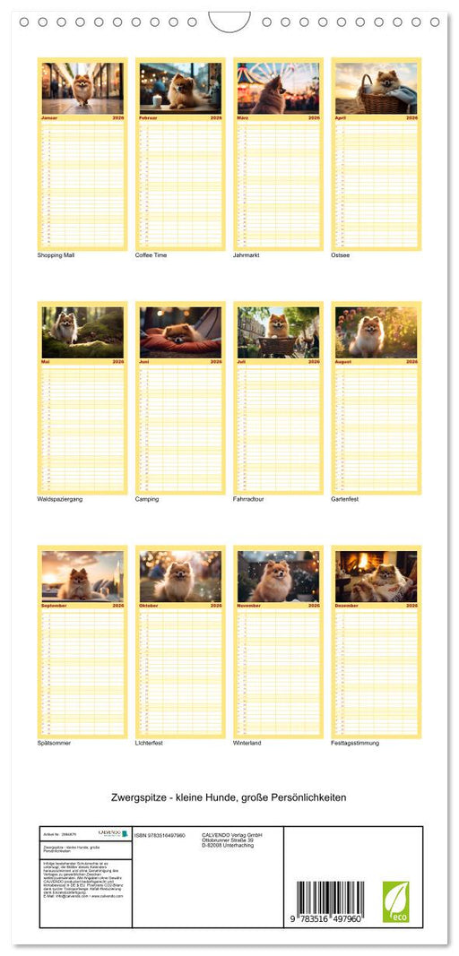 Afficher tous les détailsZwergspitze - kleine Hunde, große Persönlichkeiten (CALVENDO Familienplaner 2026)