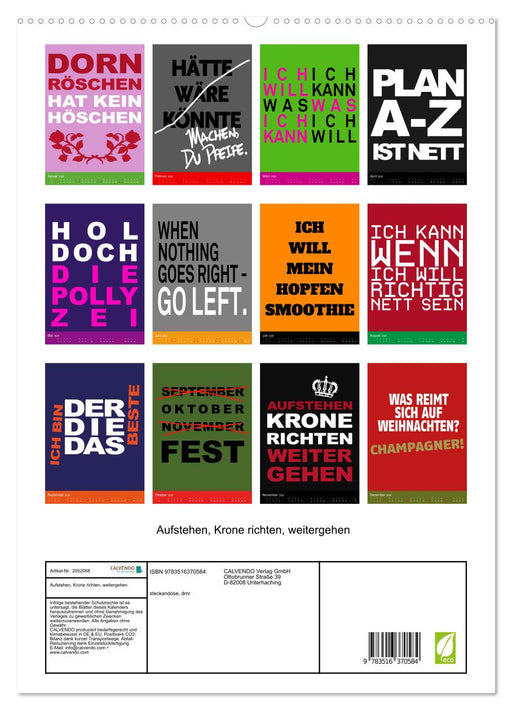 Afficher tous les détailsAufstehen, Krone richten, weitergehen (CALVENDO Wandkalender 2026)