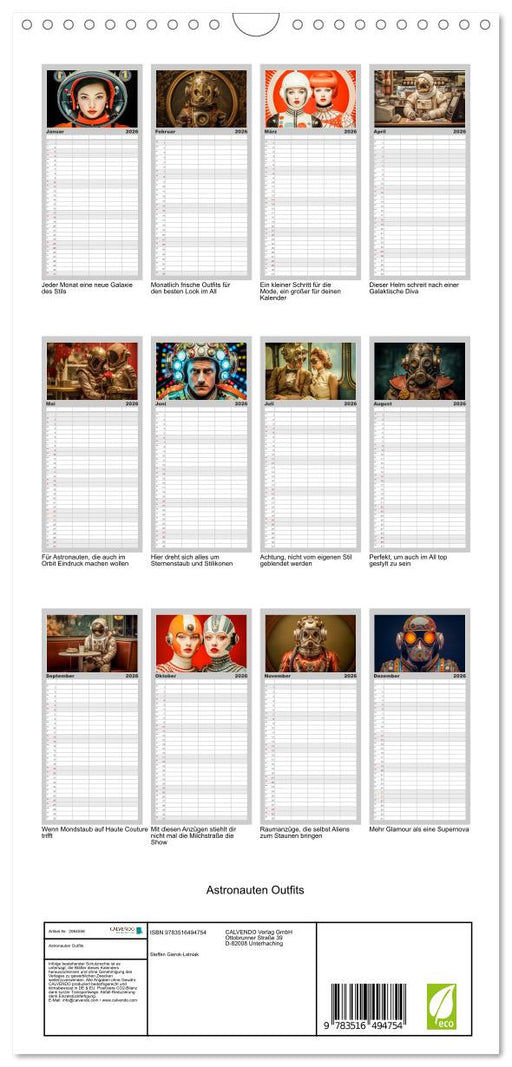 Afficher tous les détailsAstronauten Outfits (CALVENDO Wandkalender 2026)
