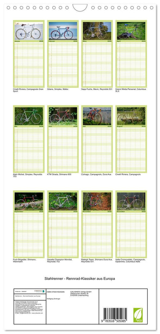 Afficher tous les détailsStahlrenner - Rennrad-Klassiker aus Europa (CALVENDO Familienplaner 2026)