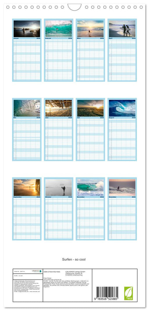Afficher tous les détailsSurfen - so cool (CALVENDO Familienplaner 2026)