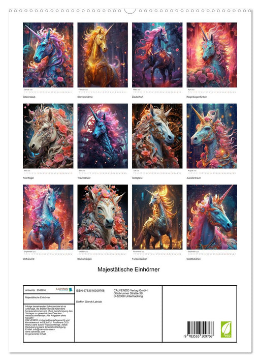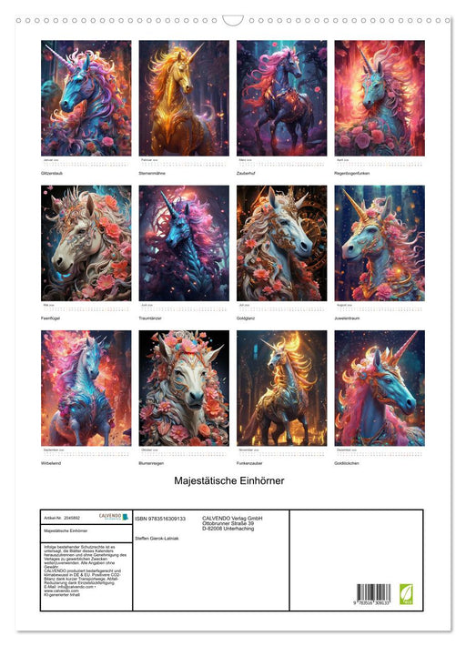 Afficher tous les détailsMajestätische Einhörner (CALVENDO Wandkalender 2026)