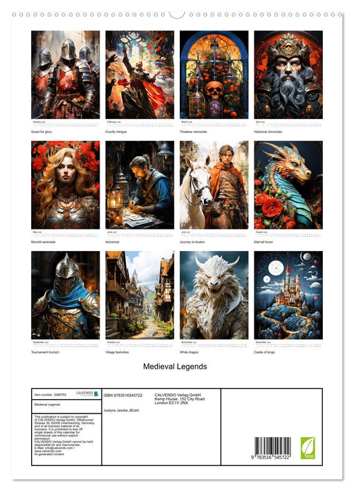 Embark on a captivating journey through time with Medieval Legends calendar, featuring enchanting digital artwork depicting knights, dragons and m...