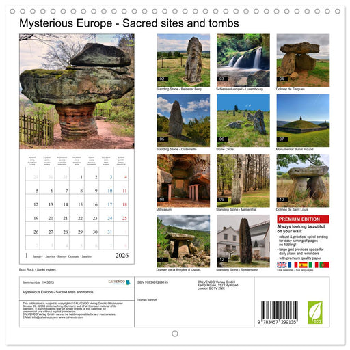 Afficher tous les détailsMysterious Europe - Sacred sites and tombs (CALVENDO Monthly Calendar 2026)