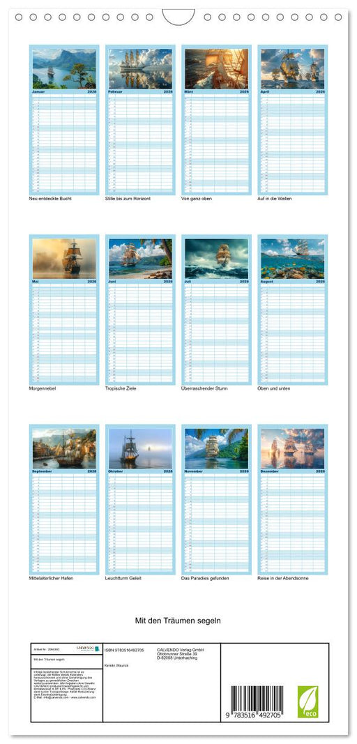 Afficher tous les détailsMit den Träumen segeln (CALVENDO Familienplaner 2026)