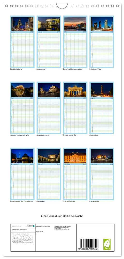 Afficher tous les détailsEine Reise durch Berlin bei Nacht (CALVENDO Familienplaner 2026)