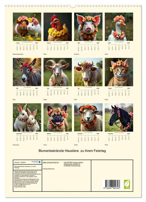Afficher tous les détailsBlumenbekränzte Haustiere zu ihrem Feiertag (CALVENDO Wandkalender 2026)
