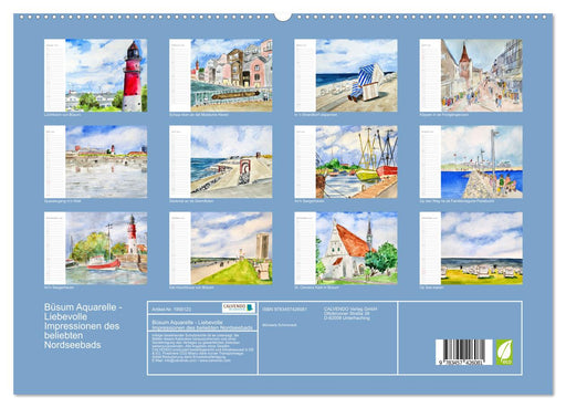 Künstlerische Eindrücke des Hafenorts und Seebads Büsum. (Monatskalender, 14 Seiten) Der Kalender präsentiert liebevoll gemalte Aquarelle des beli...