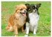 Mai: Deux chihuahuas sont assis dans l'herbe et attendent qu'on les laisse courir
