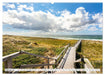 Oktober: Holzweg zum Strand im Sonnenuntergang