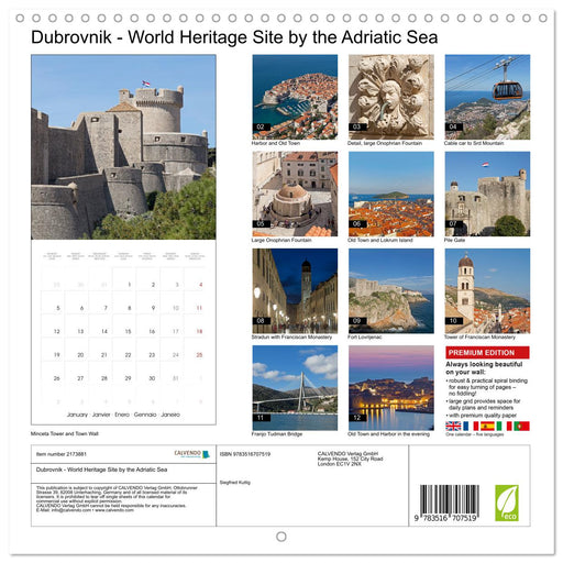 Afficher tous les détailsDubrovnik - World Heritage Site by the Adriatic Sea (CALVENDO Monthly Calendar 2026)