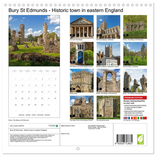 Bury St Edmunds is famous for its ruins of the Abbey of St Edmund (Monthly calendar, 14 pages) Bury St Edmunds is a historic market town in Suffol...