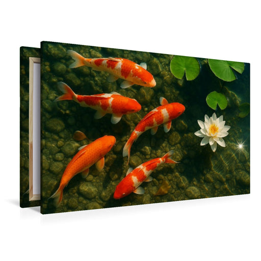 Afficher tous les détailsPremium Textil-Leinwand Koi-Karpfen im Teich – Ausdauer, Harmonie und Überfluss