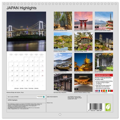 Afficher tous les détailsJAPAN Highlights (CALVENDO Monthly Calendar 2026)