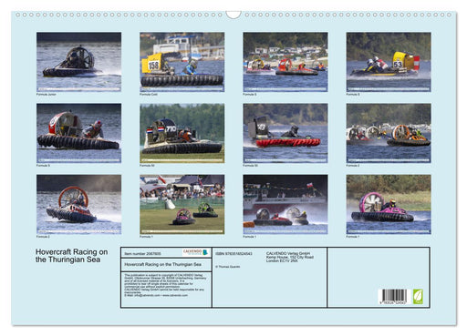 Exciting racing scenes with the hovercraft drivers and their vehicles on the Thuringian Sea. (Monthly calendar, 14 pages) Spectacular racing scene...
