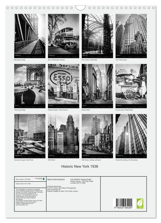 Afficher tous les détailsHistoric New York 1936 (CALVENDO Monthly Calendar 2026)